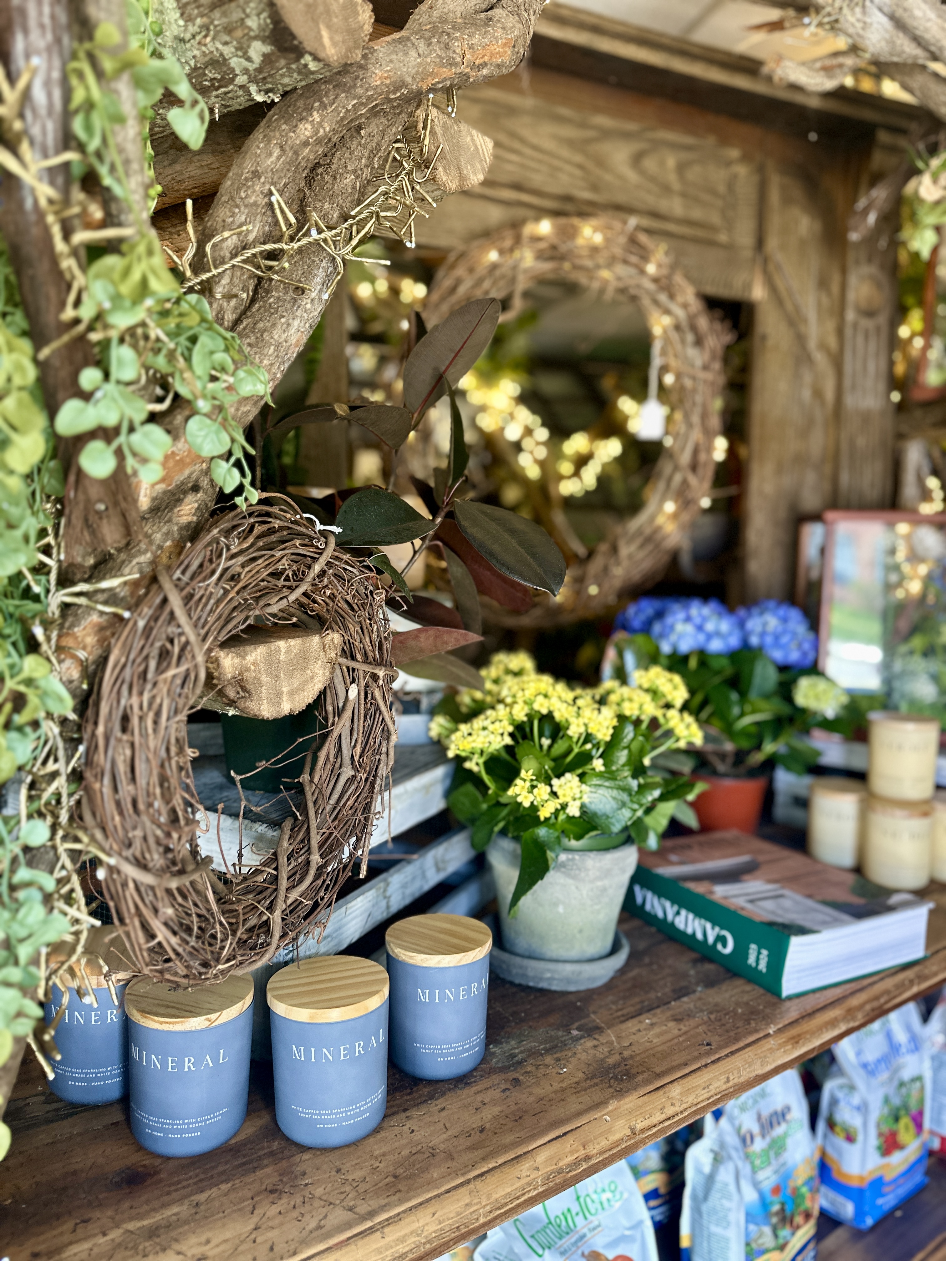 We’re constantly refreshing the shop with a wild mix of eclectic vintage decor, artisanal candles, hand-arranged dried flowers, unique books and local honey.